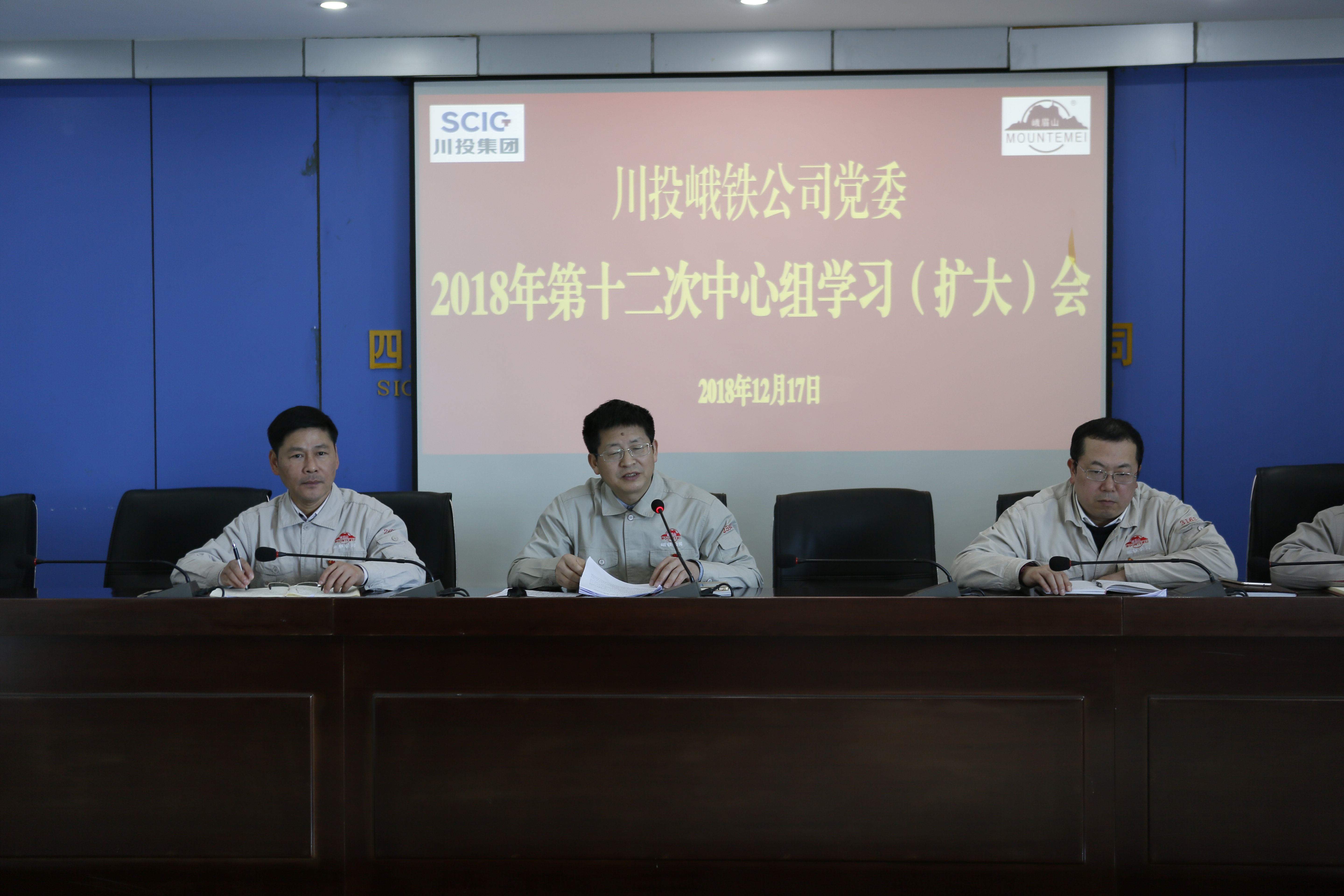 12月17日,川投峨鐵公司黨委在1011會議室召開2018年第十二次中心組學習擴大會,川投峨鐵公司黨委書記、總經(jīng)理唐華應,黨委副書記、紀委書記、工會主席余華偉、常務副總經(jīng)理李宏、總會計師方玲、總經(jīng)理助理鄭再春和后備及以上中層管理人員共57人參加,會議由唐華應主持。
