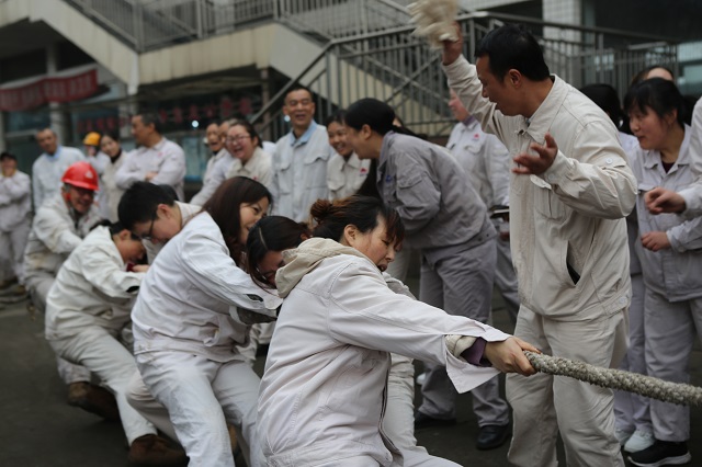 3月8日一早,近百名女職工分批齊聚在職工食堂門口參加拔河比賽,公司黨委副書記、紀委書記、工會主席余華偉代表公司黨政工向公司全體女職工致以節(jié)日問候與良好祝愿,希望女職工們在新的一年繼續(xù)以飽滿的工作熱情、扎實的工作作風,為切實完成2021年公司生產經營目標貢獻巾幗力量。