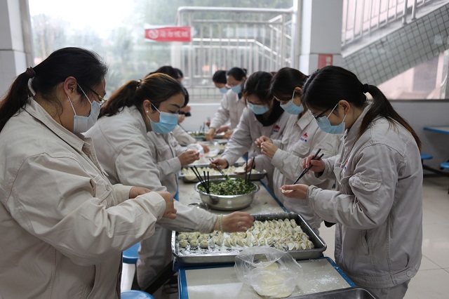 為回報公司對全體女職工的關心和愛護,助力公司生產經營中心工作,女職工們在職工食堂開展了包餃子獻愛心活動。包餃子分為團體和個人比賽,8名經各分工會推選的包餃子“高手”站在指定比賽臺前,在規(guī)定時間里完成50個餃子,個人賽中的選手們充分展示自己的聰明賢惠、雪白的餃子皮變幻出各式各樣的形狀,“柳葉餃、花朵餃”新穎美觀。唯一一名男助賽手——節(jié)能一廠職工高建軍也不甘落后,充分展示“須眉”白案手巧功力。經過緊張的比賽,最終設備保障分工會以用時最少、個數最多和外形美觀獲得一等獎,后勤保衛(wèi)和生產綜合分工會分獲二、三名。在隨后的溫暖職工包餃子活動中,大家完成了5000多個餃子的工作量,為當天午餐和晚餐就餐的一線職工們奉獻了一頓熱氣騰騰、愛心滿滿的歡樂盛宴。