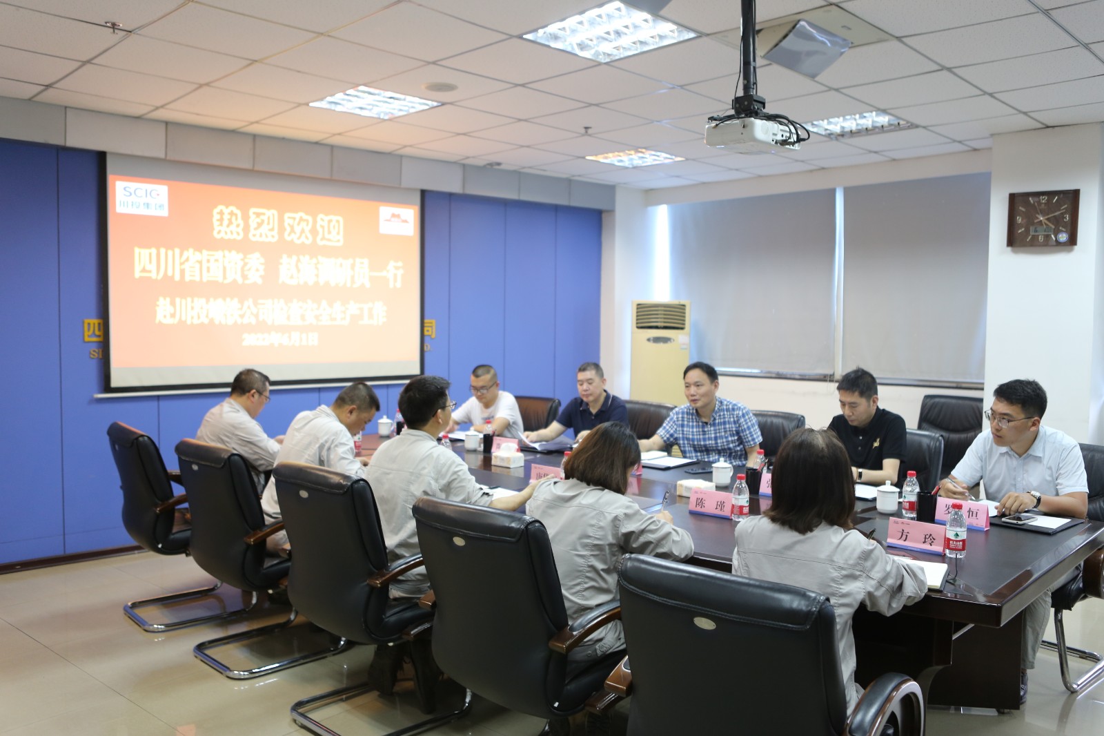 6月1日,四川省國(guó)資委社會(huì)責(zé)任處調(diào)研員趙海一行在川投集團(tuán)公司安全環(huán)保部陶世賢部長(zhǎng)陪同下,到川投峨鐵公司檢查安全生產(chǎn)工作。公司黨委書記、董事長(zhǎng)唐華應(yīng),黨委副書記、總經(jīng)理陳新龍等領(lǐng)導(dǎo)和部門負(fù)責(zé)人陪同檢查。