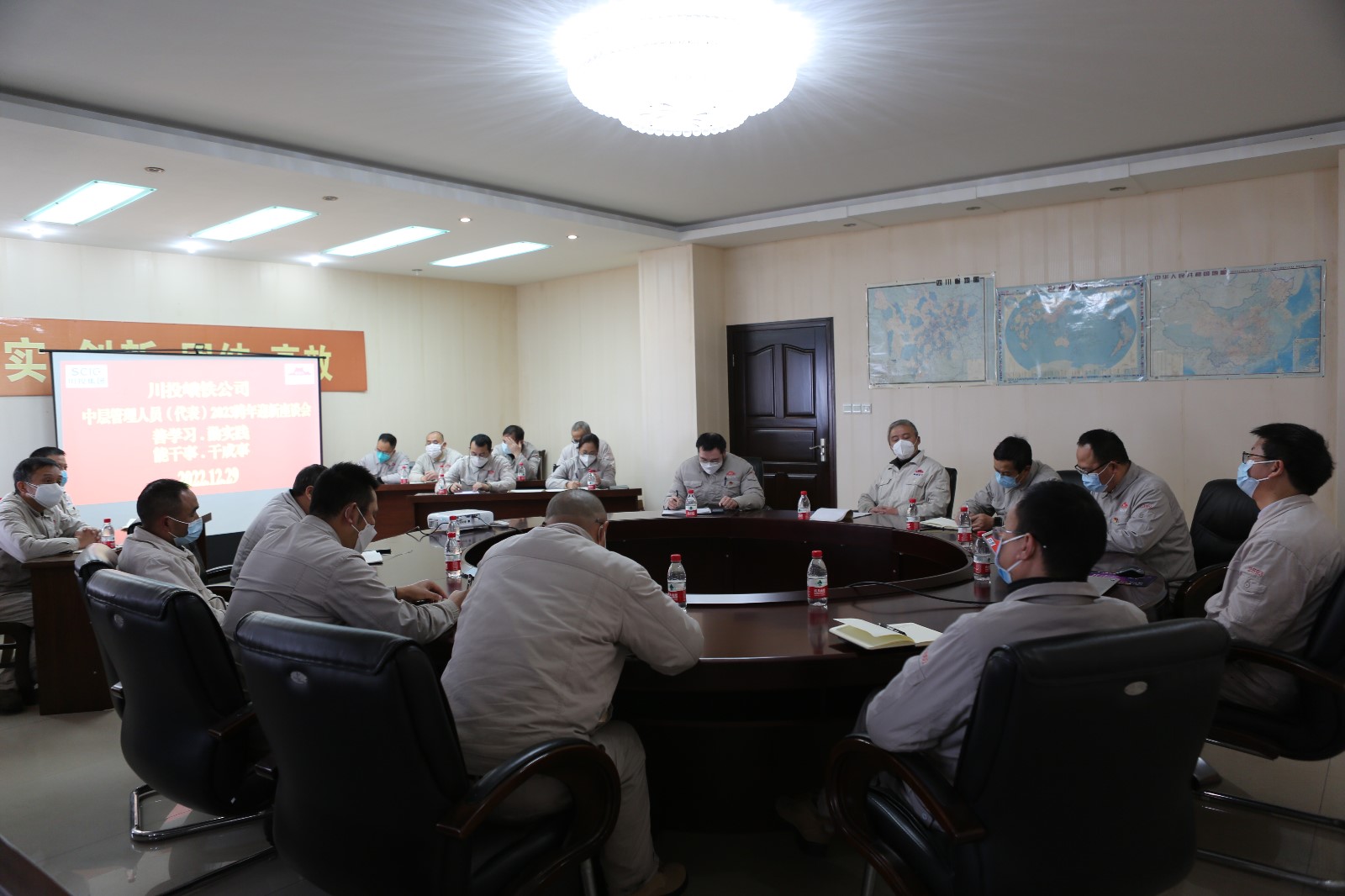 一元復(fù)始,萬象更新。為切實(shí)總結(jié)2022年的成效與不足,為2023年工作開好局奠定思想基礎(chǔ),12月29日和30日下午,公司黨委書記、董事長唐華應(yīng)在1002會(huì)議室分兩次主持召開了中層管理人員、業(yè)務(wù)技術(shù)人員(技術(shù)干部)代表2023跨年迎新座談會(huì)。公司黨委委員、紀(jì)委書記丁憲,黨委委員、總會(huì)計(jì)師方玲,總經(jīng)理助理鄭再春,營銷總監(jiān)周全,總經(jīng)理助理張嚴(yán)銘,中層助理及以上管理人員和公司業(yè)務(wù)技術(shù)人員(技術(shù)干部)代表共計(jì)37人參加。
