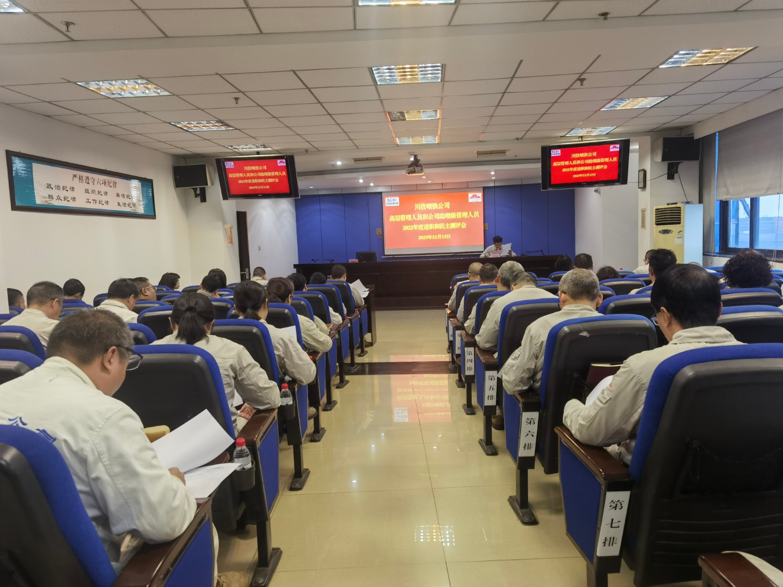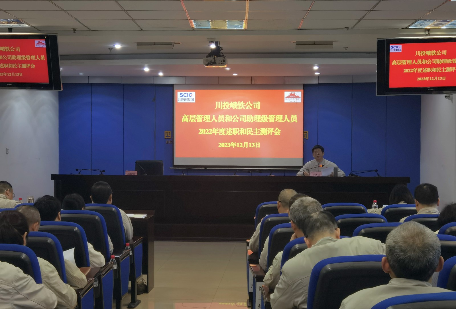 12月13日,川投峨鐵公司黨委在1011會議室召開高層管理人員和公司助理級管理人員2022年度述職和民主測評會。會議由公司黨委書記、董事長唐華應(yīng)主持。