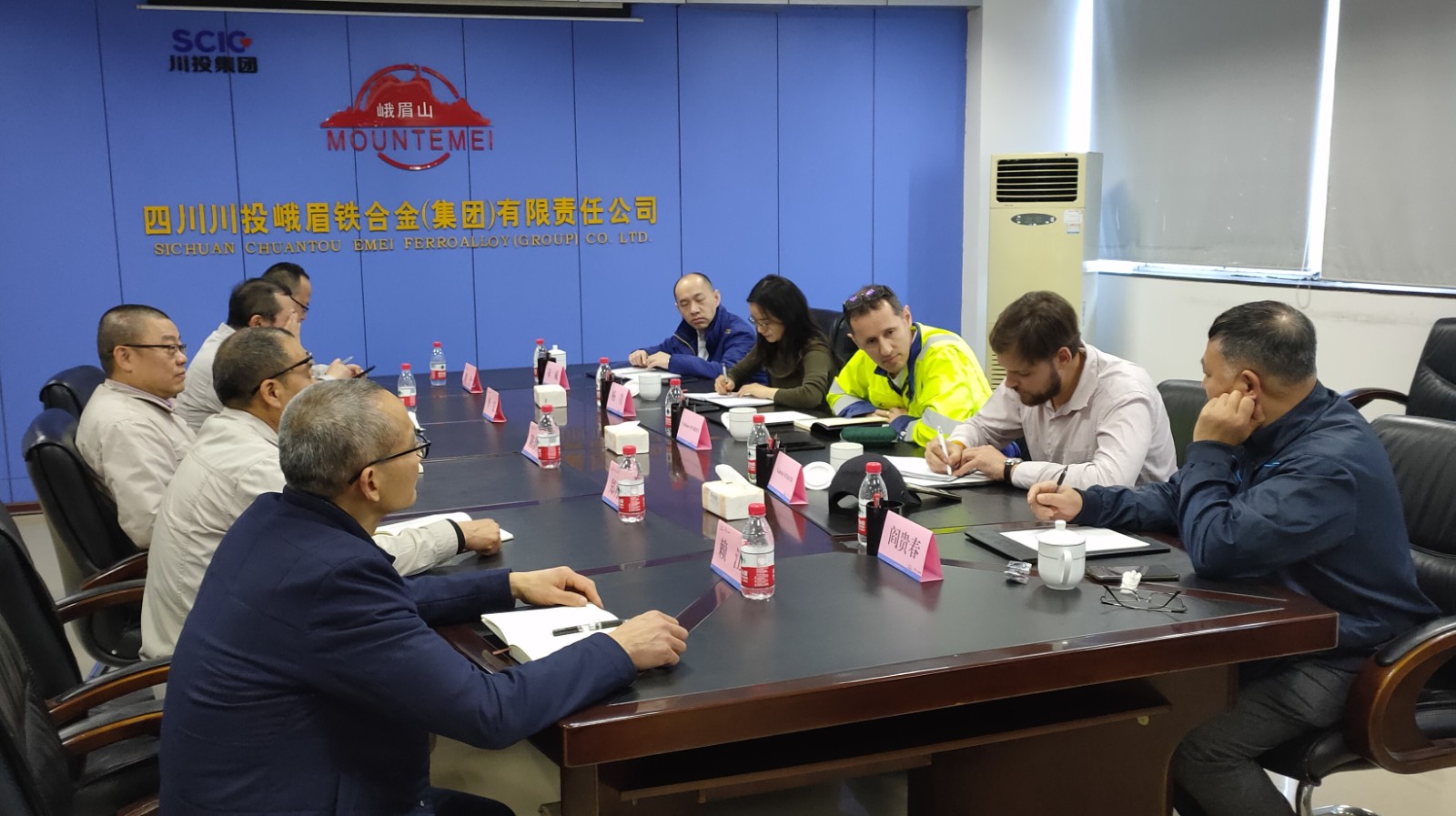 3月14日,埃赫曼集團(tuán)法國總部技術(shù)經(jīng)理Cristiano DE BRITO一行5人到訪川投峨鐵公司。川投峨鐵公司黨委副書記、總經(jīng)理陳新龍?jiān)?08會(huì)議室與來訪客人進(jìn)行了交流座談。