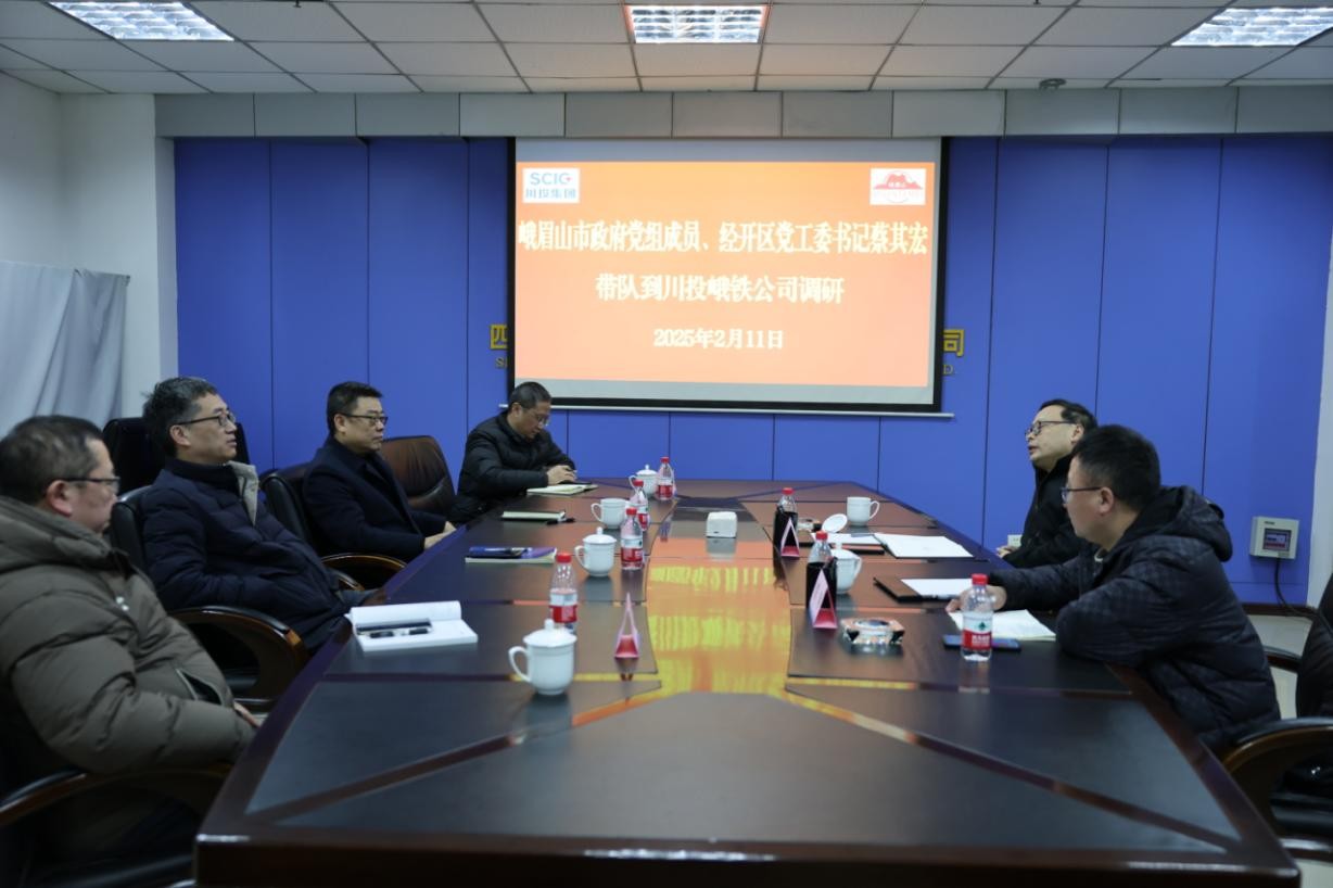 2月11日,峨眉山市政府黨組成員、經(jīng)開區(qū)黨工委書記蔡其宏帶領(lǐng)峨眉山市經(jīng)濟(jì)和信息化局黨組成員、總經(jīng)濟(jì)師賈翔赴川投峨調(diào)研交流項(xiàng)目開展進(jìn)程。川投峨鐵公司黨委書記、董事長李勝章,黨委副書記、總經(jīng)理陳新龍,黨委委員、常務(wù)副總經(jīng)理李宏,總經(jīng)理助理李科參加會議。