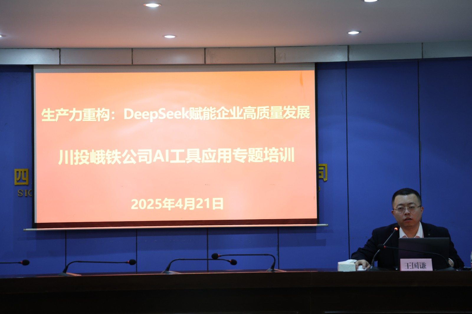 為使公司員工熟練掌握 AI工具應(yīng)用,提高工作效率與創(chuàng)新能力。4月21日,川投峨鐵公司邀請(qǐng)AI專(zhuān)家講師王國(guó)謙到公司開(kāi)展了AI工具應(yīng)用專(zhuān)題培訓(xùn)。川投峨鐵公司在家領(lǐng)導(dǎo)班子成員、中層干部及一般管理崗人員共計(jì)89人參加