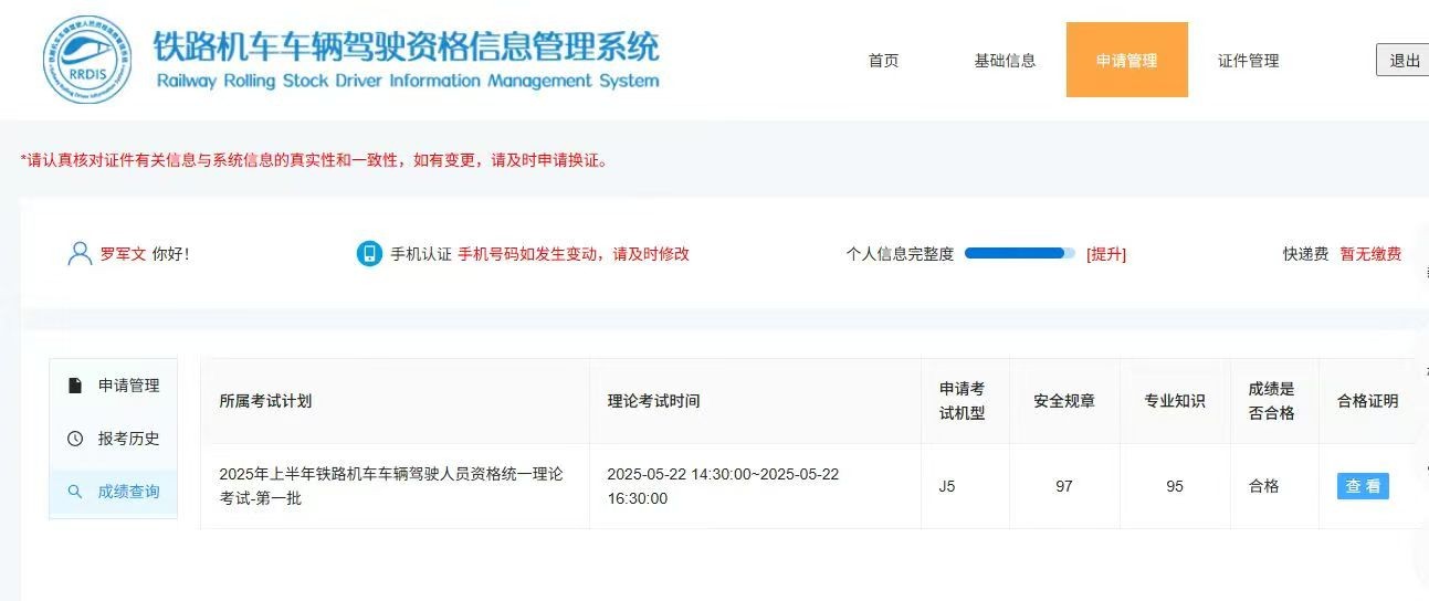 國家鐵路局鐵路機車車輛駕駛?cè)藛T資格考試作為國家級行業(yè)考試,由國家鐵路局統(tǒng)一組織。在公司的統(tǒng)籌安排和支持下,今年4至5月,該員工全脫產(chǎn)參與了中鐵成都局組織的鐵路機車車輛駕駛?cè)藛T全封閉式集中培訓(xùn)。培訓(xùn)時長超過40天,在高強度的學(xué)習(xí)任務(wù)與緊張的培訓(xùn)節(jié)奏下,該員工憑借毅力與努力,以扎實的理論基礎(chǔ)取得了優(yōu)異成績,理論考試兩門科目《安全規(guī)章》和《專業(yè)知識》分別拿下97分和95分的高分,綜合評定成績合格。