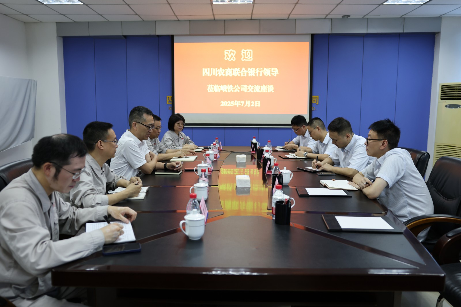 在座談會上,李勝章代表峨鐵公司感謝四川農(nóng)商銀行長期以來的支持,并就公司未來的戰(zhàn)略規(guī)劃進(jìn)行了介紹,強(qiáng)調(diào)銀企合作的戰(zhàn)略價值。陳新龍系統(tǒng)介紹了公司經(jīng)營現(xiàn)狀與戰(zhàn)略規(guī)劃,結(jié)合運(yùn)營數(shù)據(jù)重點(diǎn)闡釋貸款項(xiàng)目的預(yù)期經(jīng)濟(jì)效益??疾旖M高度肯定公司項(xiàng)目建設(shè)成效,表示此次考察為貸款審批提供了重要依據(jù)。雙方將持續(xù)深化協(xié)作,在支持企業(yè)發(fā)展、服務(wù)地方經(jīng)濟(jì)中實(shí)現(xiàn)互利共贏。