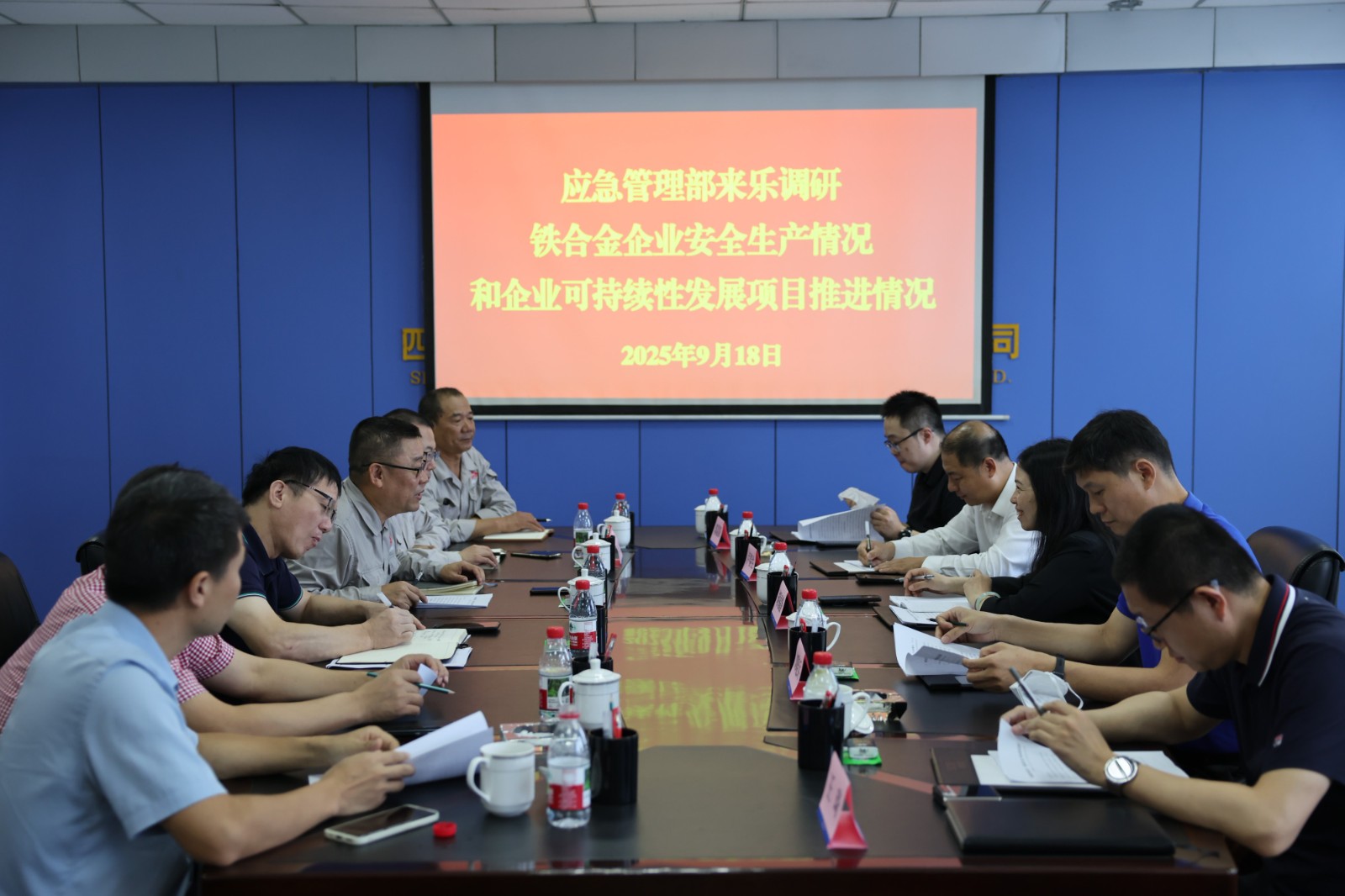 9月18日,應(yīng)急管理部執(zhí)法工貿(mào)局二級(jí)巡視員胡福靜一行,到川投峨鐵公司調(diào)研鐵合金企業(yè)安全生產(chǎn)和企業(yè)可持續(xù)發(fā)展項(xiàng)目推進(jìn)情況。樂山市應(yīng)急管理局副局長胥朝彪、峨眉山市應(yīng)急管理局局長張陸清及相關(guān)人員陪同調(diào)研。